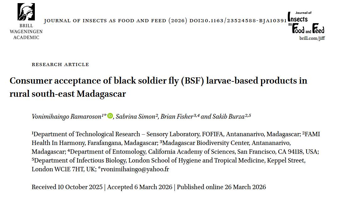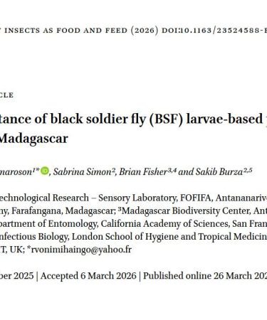 Consumer acceptance of black soldier fly (BSF) larvae-based products in rural south-east Madagascar. Dr. Vonimihaingo Ramaroson, chef de Département de Recherche Technologique au FOFIFA, a récemment publié un article …