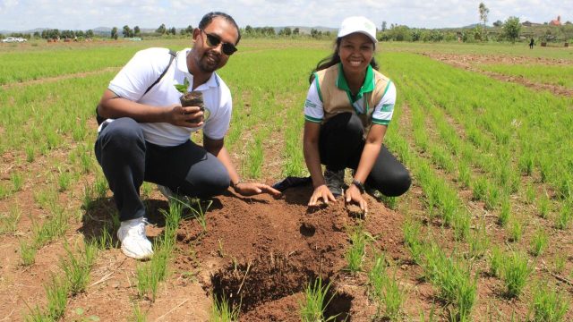 miisa 3500 tamin’ny velaran-tany 8Ha. Hazo fihinam-boa, Acacia, Kininina, izay mikajy ny nofon-tany ary mitazona ny hamandoana.