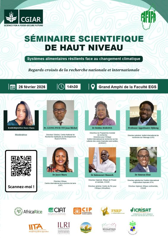 Pr. LEONG POCK TSY Jean Michel , le Directeur Général du FOFIFA participera en tant qu’intervenant au séminaire scientifique de haut niveau qui se tiendra le 26 février 2026 à 14 h 30 dans le grand amphithéâtre de la faculté EGS Ankatso. Le thème de sa présentation sera :