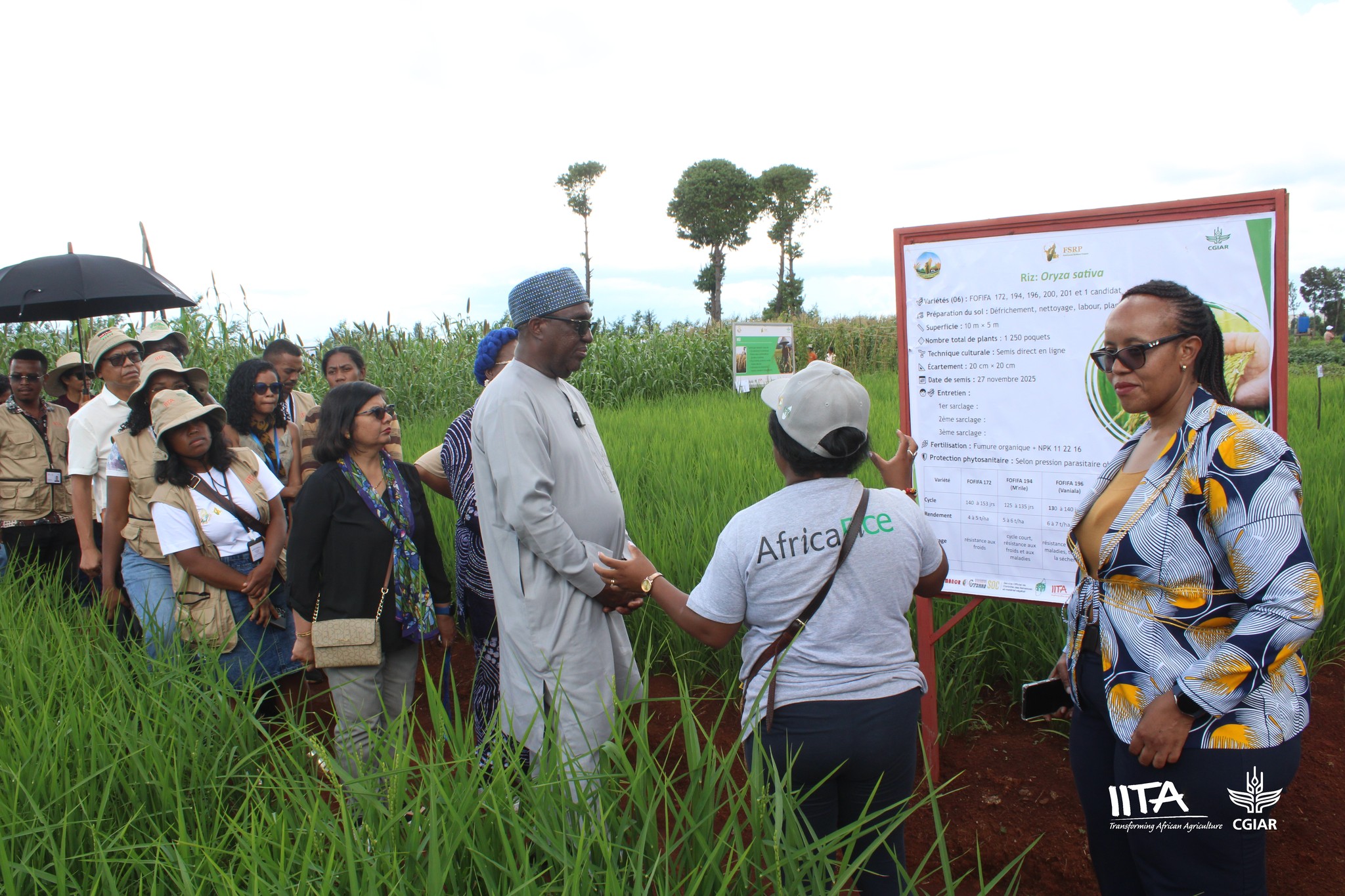 🌾 Sur les parcelles d’AfricaRice, la délégation a pu constater les avancées en matière de variétés de riz adaptées aux réalités agroécologiques locales, avec un accent particulier sur la qualité semencière et la diffusion auprès des producteurs.